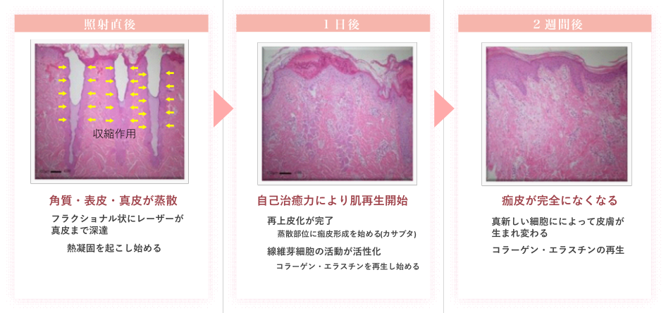 従来のレーザー治療器は、レーザー光にむらがあり、照射部位の中心はエネルギーが高く外側にいくほど弱まるようになっていました。そのため中心部は炎症やダメージが強く外側は効果が不十分となる傾向がありました。その点スペクトラは均一なレーザー光を照射する高い性能を持ち、過剰なダメージを与えることなく安定した効果を得ることができます。そのため肌への負担も少なく効率良くシミを治療できます。タトゥーを消したい方にも効果がります。